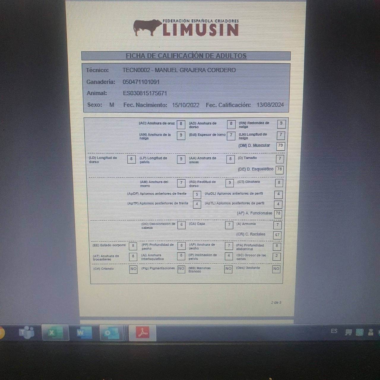 TOM TOM BCZ ES030815175671 NACIDO 15/10/2022 DE INSEMINACIÓN DE WILODGE JOSKINS X MELITONA (DELTA X PARISIEN POR EDDY CAR) CALIFICACIONES DM 79 DE 78 AF78 MUCHA CARNE Y FINURA DE HUESO