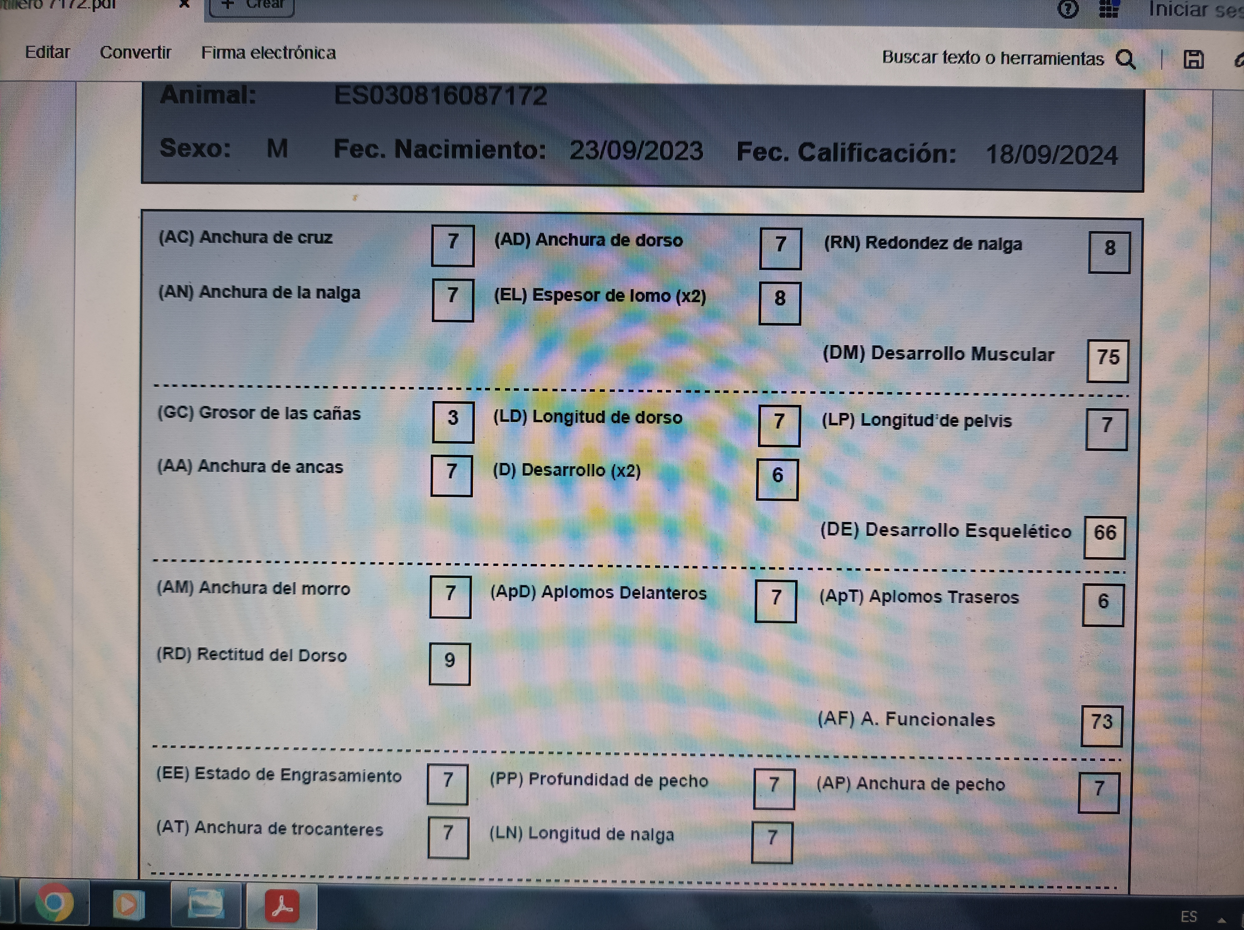 Utillero-HMM, nacido 23/09/2023.Inseminacion BEL-ORIENT. Calificación al destete, DM 75, DE 66, AF 73.
