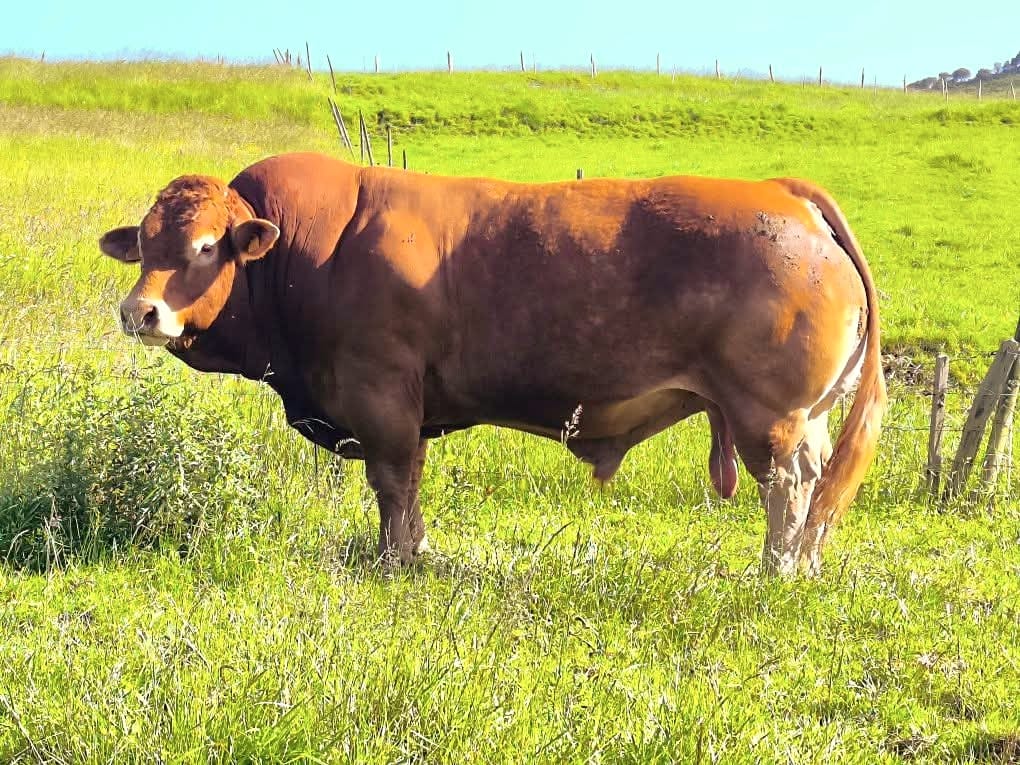 Semental Limusín de tipo mixto, procedente de la reconocida ganadería francesa GAEC Camus Père et Fils, con líneas contrastadas. Animal muy completo, destacando por su excelente grupa, profundidad y gran desarrollo muscular. De carácter noble y manejable, adaptado a sistema extensivo. Toro hecho, funcional y listo para trabajar. 5 años y medio