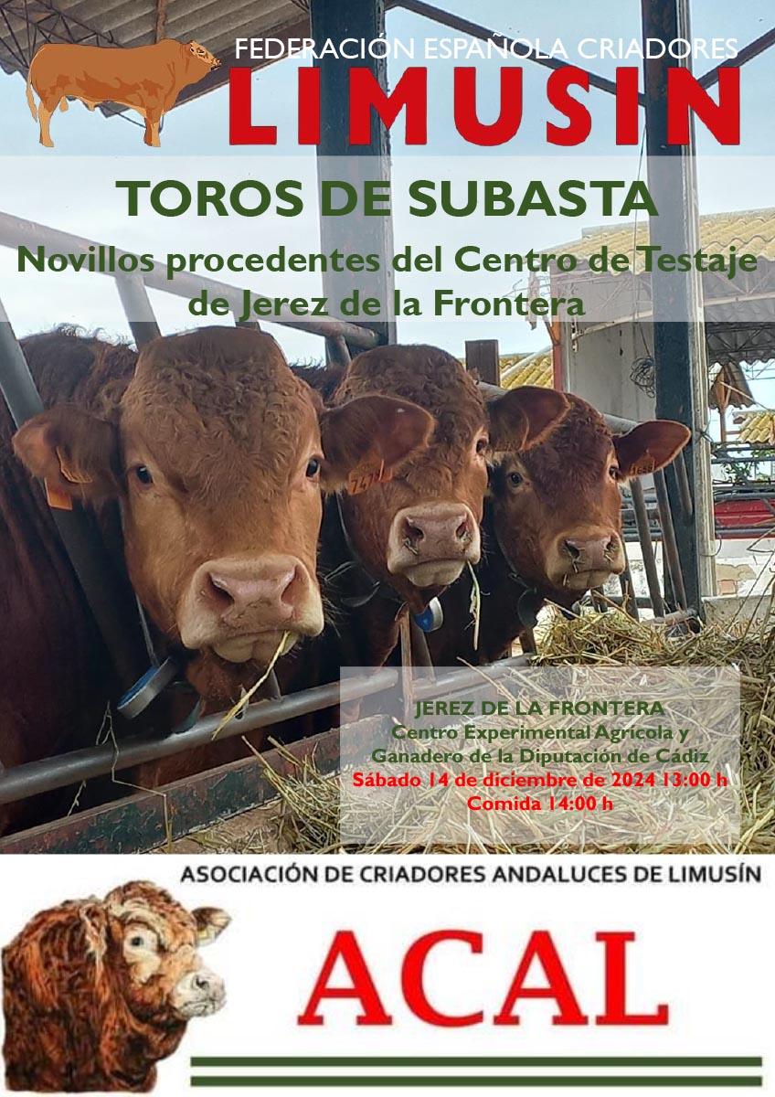 El Sábado 14 de Diciembre a las 13:00 horas en el Centro Experimental Agrícola y Ganadero de la Diputación de Cádiz en la localidad de Jerez de la Frontera se procederá a la subasta de 4 sementales procedentes de la serie 36 de Jerez. Si necesita un semental para su ganadería la FECL ofrece todas las garantías. Acude a la cita.