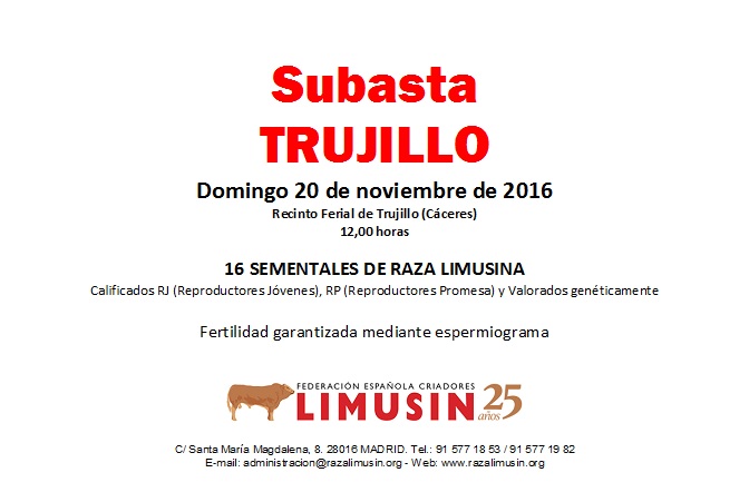 Exsitosa subasta en Trujillo el pasado domingo 20 de noviembre en la que se vendieron 14 ejemplares subastados