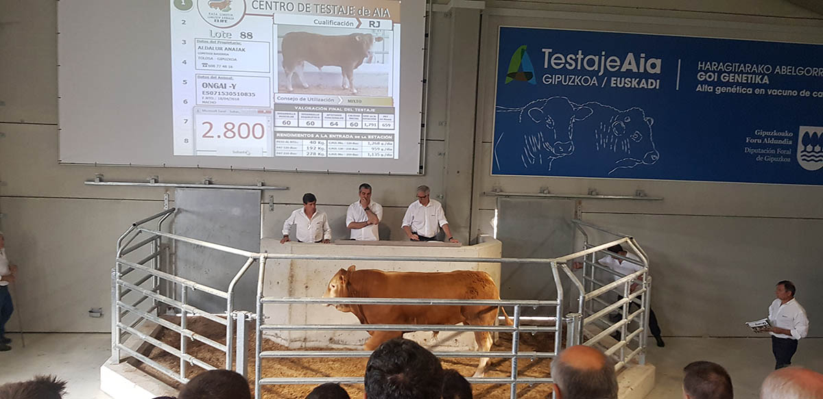El domingo 14 de julio de 2019 se celebró la Subasta de novillos de Aptitud Cárnica y Reproductores Jóvenes (RJ, RJC, RP) de raza limusina en el Centro de Testaje de Aia (Guipuzcoa).