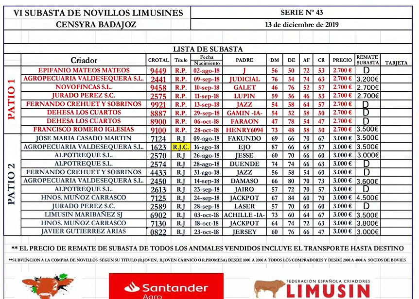 Recordamos que para los compradores de novillos había ayudas y que el precio de remate de la subasta incluye el transporte de animal.