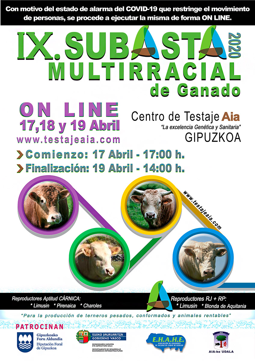 Este pasado fin de semana se celebró de forma online la primera Subasta de novillos de raza Limusín procedentes del Centro de Testaje de Aia.