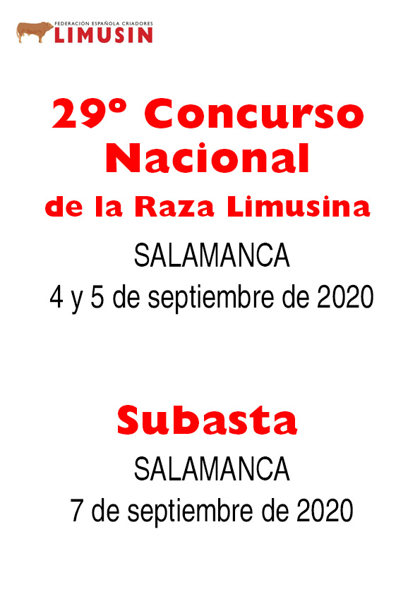 Desde hoy mismo se abre el plazo de inscripción de animales para el 29º Concurso Nacional de la Raza Limusina que se celebrará en Salamanca, en septiembre de 2020.