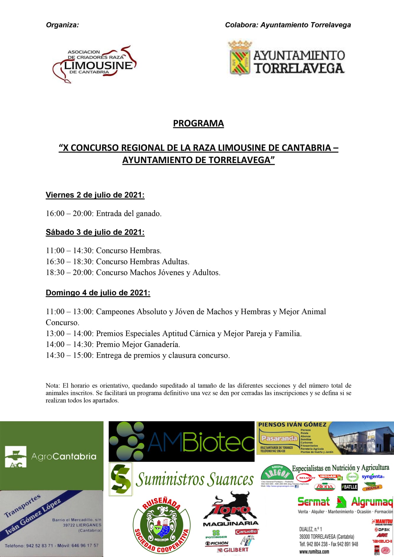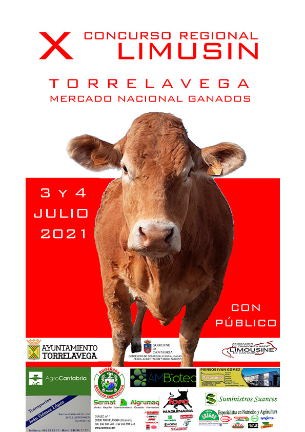 El X Concurso Regional de la Raza Limusina de Cantabria se celebrará los días 3 y 4 de Julio de 2021 en el Marco de Expogan, en el Mercado Nacional de Ganados de Torrelavega (Cantabria) y actuará como Juez del Concurso D. Jerôme Forcade.