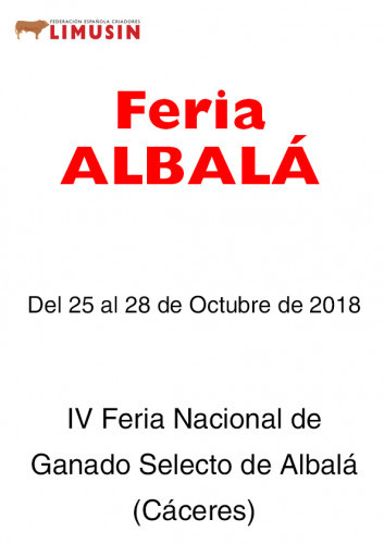 Del 25 al 28 de octubre se ha celebrado la IV Feria Nacional de Ganado Selecto de Albalá (Cáceres) que por primera vez ha sido catalogada como Feria Nacional con lo que ya figura en el Calendario Oficial español.