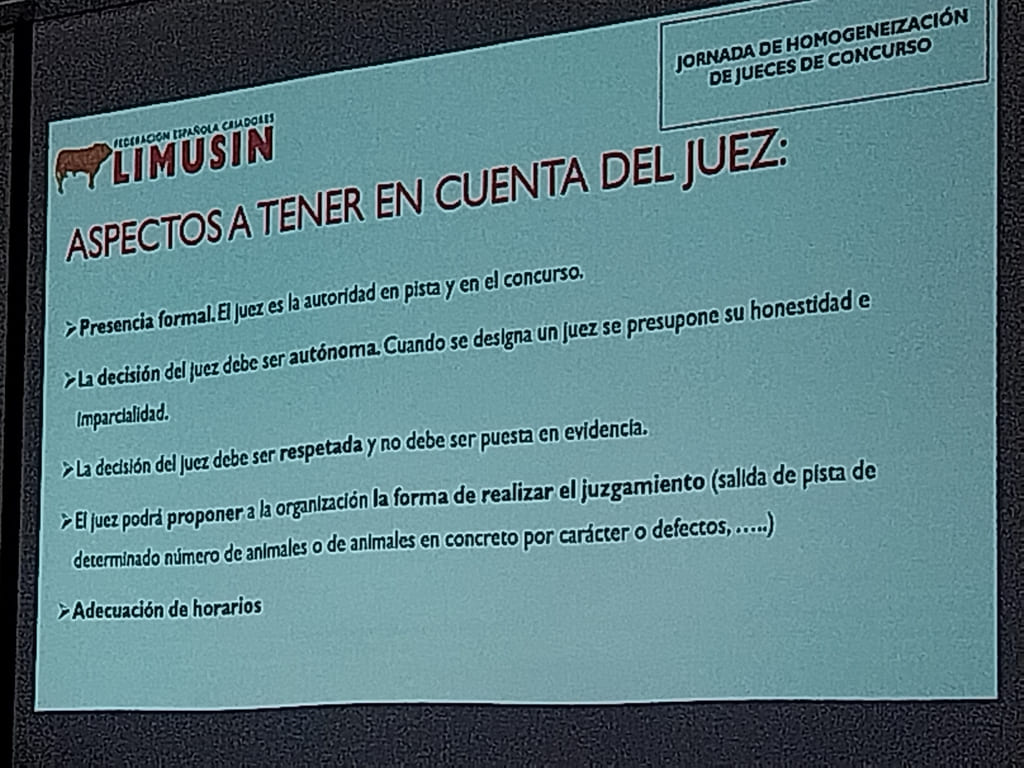La jornada se ha basado en la explicación metodología que debe seguir un juez en concurso, además de fijar criterios comunes para el mejor funcionamiento del mismo, la forma de conseguir transmitir al público el espectáculo de la pista y de explicar las virtudes de la raza limusina.