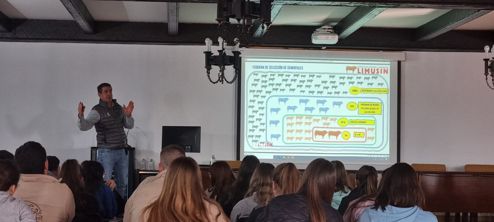 Esta jornada ha tenido lugar en el salón de la casa palacio de la citada finca de Castro Enríquez y ha sido impartida por ALBERTO GALLEGO MURIEL (Adjunto a la Dirección Técnica de la raza limusina e Ingeniero Agrícola).