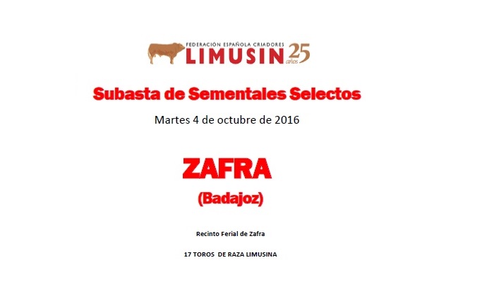 Del 29 al 4 de octubre tendrá lugar la feria de Zafra (Badajoz) en el recinto ferial, donde se realizará un concurso-exposición y la subasta de animales de raza limusina.