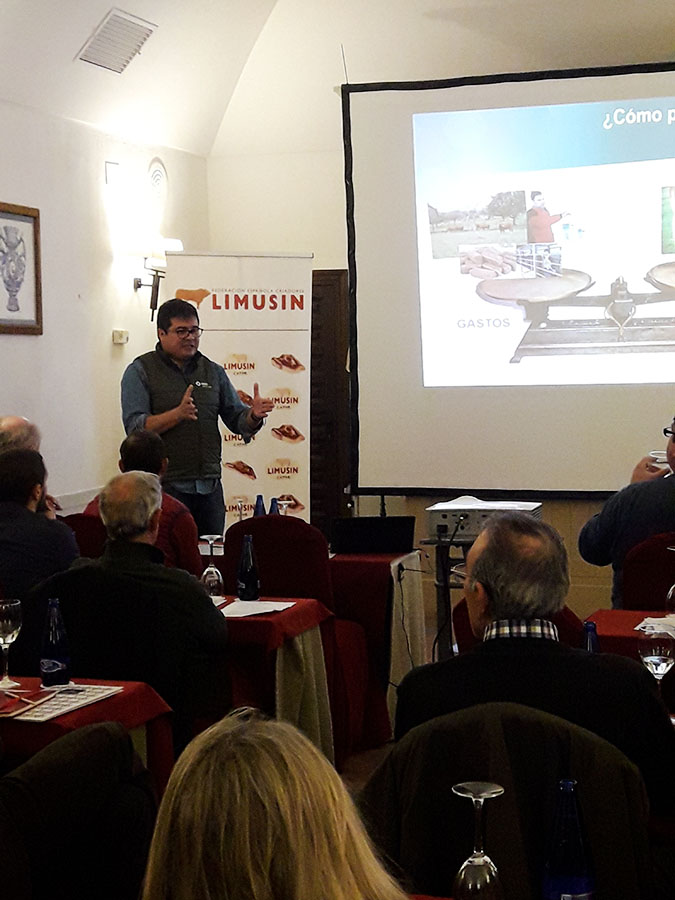 La Jornada continuó sobre el desarrollo de la marca de garantía para la carne de limusín. El presidente de la Federación Española de Criadores de Limusín, D. Pedro Domecq Gandarias, explicó brevemente las consultas y gestiones que en su día se realizaron ante el Ministerio, así como la evolución de los trámites hasta la creación de la actual Comisión delegada para el desarrollo del proyecto. Esta Comisión está formada por 2 ganaderos del Libro Genealógico, D. Víctor Meabe Eguiluz y D. José Vidal Ramos Sánchez y 2 miembros de la Junta Directiva de la Federación, D. Juan Luis Muñoz Carrasco, Presidente de Limusinex y D. Pedro Gómez Gómez, Presidente de la Asociación de Cantabria, más el Director Técnico, D. Javier García Calvillo. La presidencia de la Comisión por delegación del Presidente de la Federación la ostenta D. Pedro Gómez Gómez Vicepresidente de la Federación Española de Criadores de Limusín.
