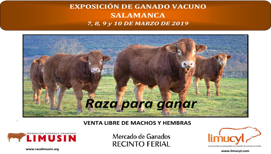 La Feria de Marzo se celebrará desde el 7 hasta el 10 de marzo en el Recinto Ferial de Salamanca, y se expondrá ganado limusín con venta libre de machos y hembras. Estos ejemplares de raza limusina proceden de ganaderías de LIMUCYL (Asociación de Criadores de Limusín de Castilla y León)