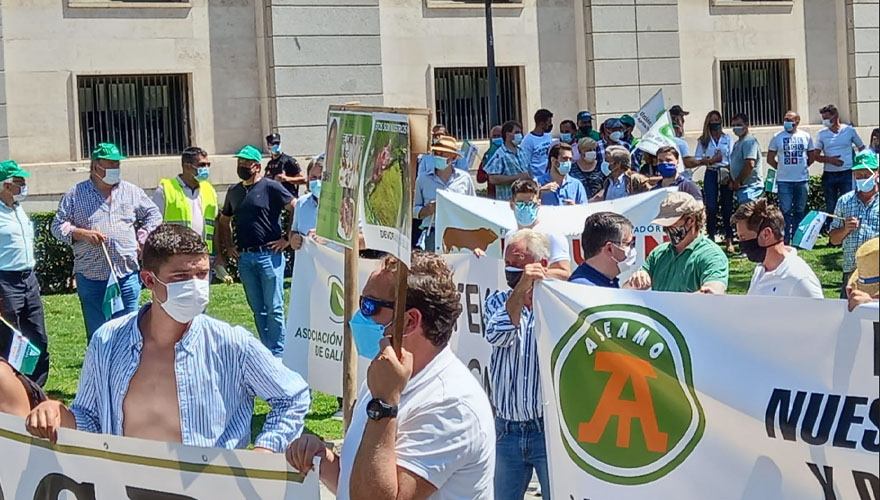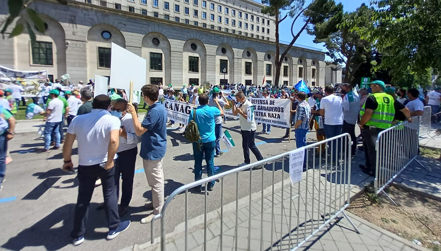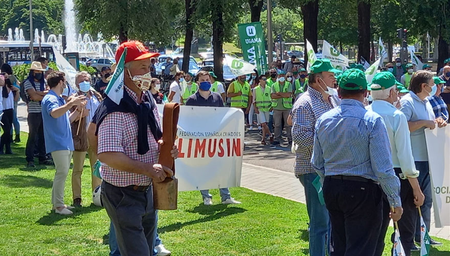 Representantes de la Federación Española de Criadores de Limusín acudieron hoy, miércoles 9 de junio a las 12:00 horas, a la concentración en Madrid que la Plataforma en Defensa de la Gestión del Lobo ha convocado frente al Ministerio de Transición Ecológica y del Reto Demográfico (MITECO).
