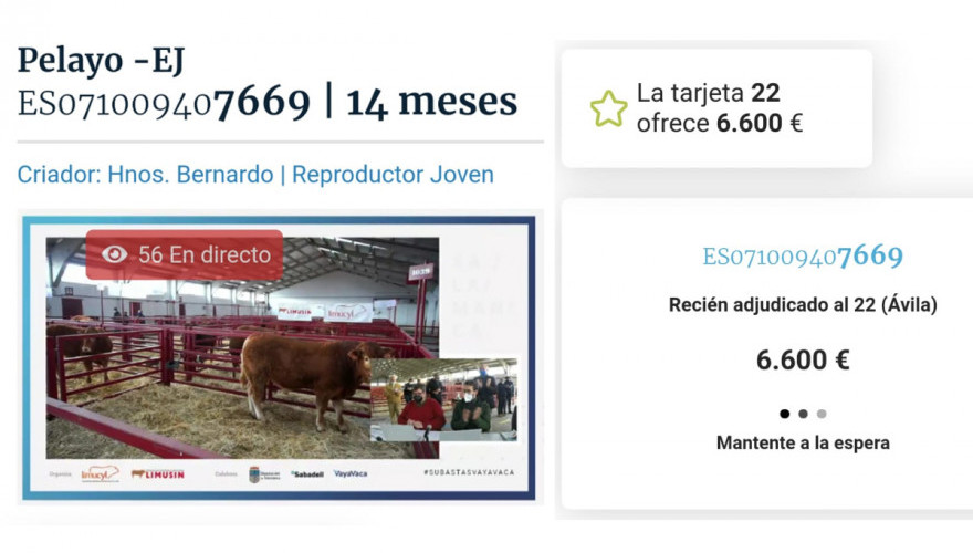Gran éxito de la 2ª Subasta Online celebrada en el Mercado de Ganados de Salamanca con 7 novillos y 5 novillas de pura raza Limusina procedentes del Centro de Testaje de Castro Enríquez, en...