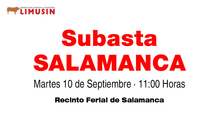 Ya están disponibles los Catálogo de la Subasta de Toros Sementales que tendrá lugar en el recinto Ferial de Salamanca el martes 10 de septiembre a partir de las 11...