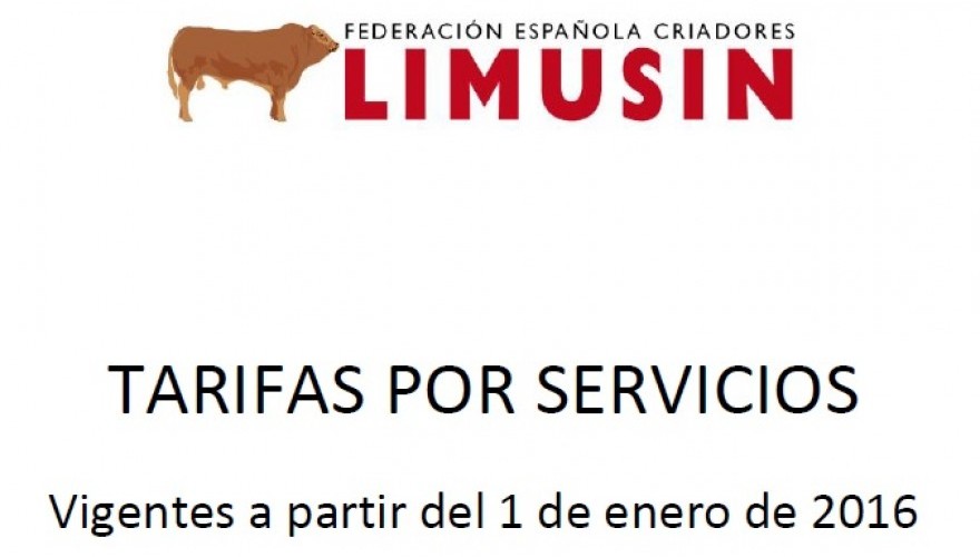 La Federación Española de Criadores de Limusín fija sus nuevas tarifas por servicios prestados a entrar en vigor a partir del 1 de Enero de 2016.
